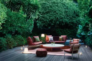 Diesen Zauber erschaffen wir Ihnen mit schönen Outdoor-Teppichen, behaglichen Textilien und gemütlichen Outdoormöbeln von Fast, Kettal, Fischer, Pedrali, Jan Kurtz, etc. Unsere Auswahl an Outdoor-Leuchten zaubern auch in den Abendstunden die Magie in Ihren Garten, Wassergeplätscher und schützende Wandelemente lassen Sie in eine andere Welt eintauchen und den Alltag vergessen…